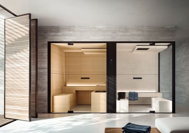 Supportiamo la realizzazione di ambienti wellness integrati, fornendo soluzioni tecnologiche e di design per spa, saune, idromassaggi e benessere domestico o alberghiero